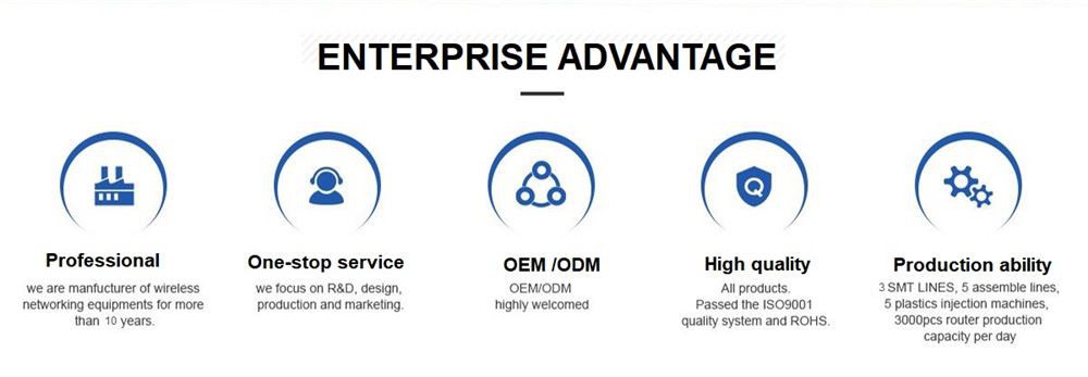 Mūsu galvenie produkti ir: 5G/4G maršrutētāji (MiFi, CPE maršrutētājs), 3G/4G bezvadu usb sargspraudnis, Wi-Fi atkārtotājs, bezvadu LAN adapteris, 4G antena utt.